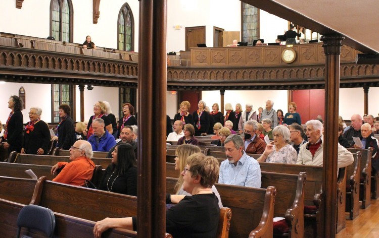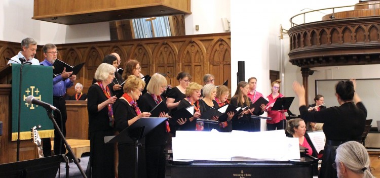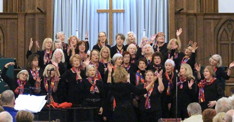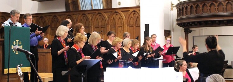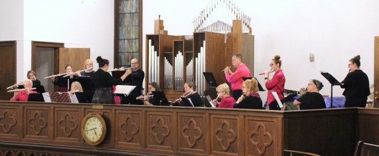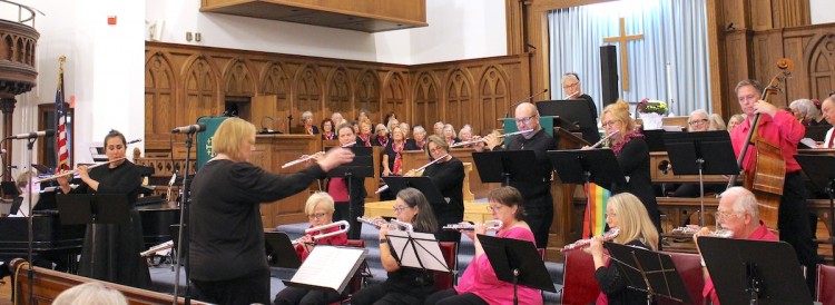 The Chancel Choir, along with members of the Flute Loops, pivoted to sacred melodies, such as "When in Our Music God is Glorified."