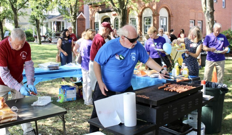 Following worship, everyone spilled out into the sunshine and onto the Parade Ground for our annual hot dogs and ice cream picinc.  There was great fellowship and conversation.  There was a "scavenger hunt" adventure when folks filled out a bingo-type card answering questions about various First Church fun facts.